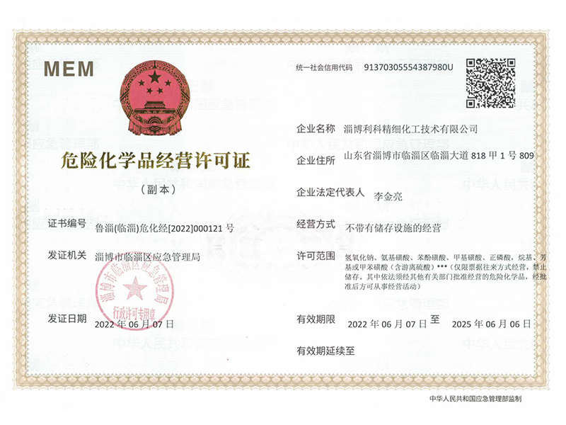 危險化學(xué)品經(jīng)營許可證